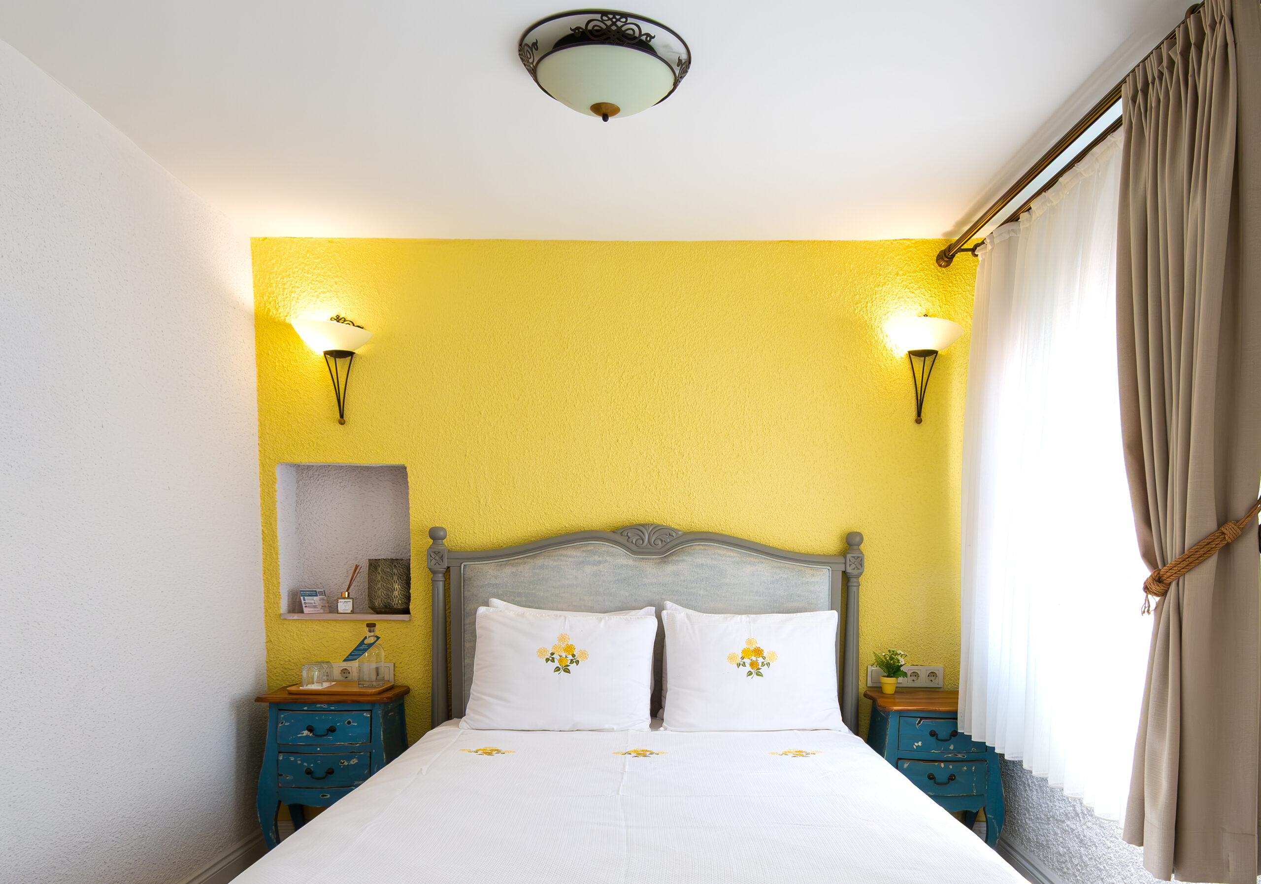 Güneşin neşesini içinde taşıyan, gülümseten bir oda… Papatya Odası, 20 metrekarelik kompakt yapısına rağmen enerjisiyle kocaman bir alan hissi yaratıyor. Sarı ve doğal tonlarla dekore edilmiş bu tatlı oda, ilk bakışta bile insanın içini ısıtan bir atmosfere sahip.