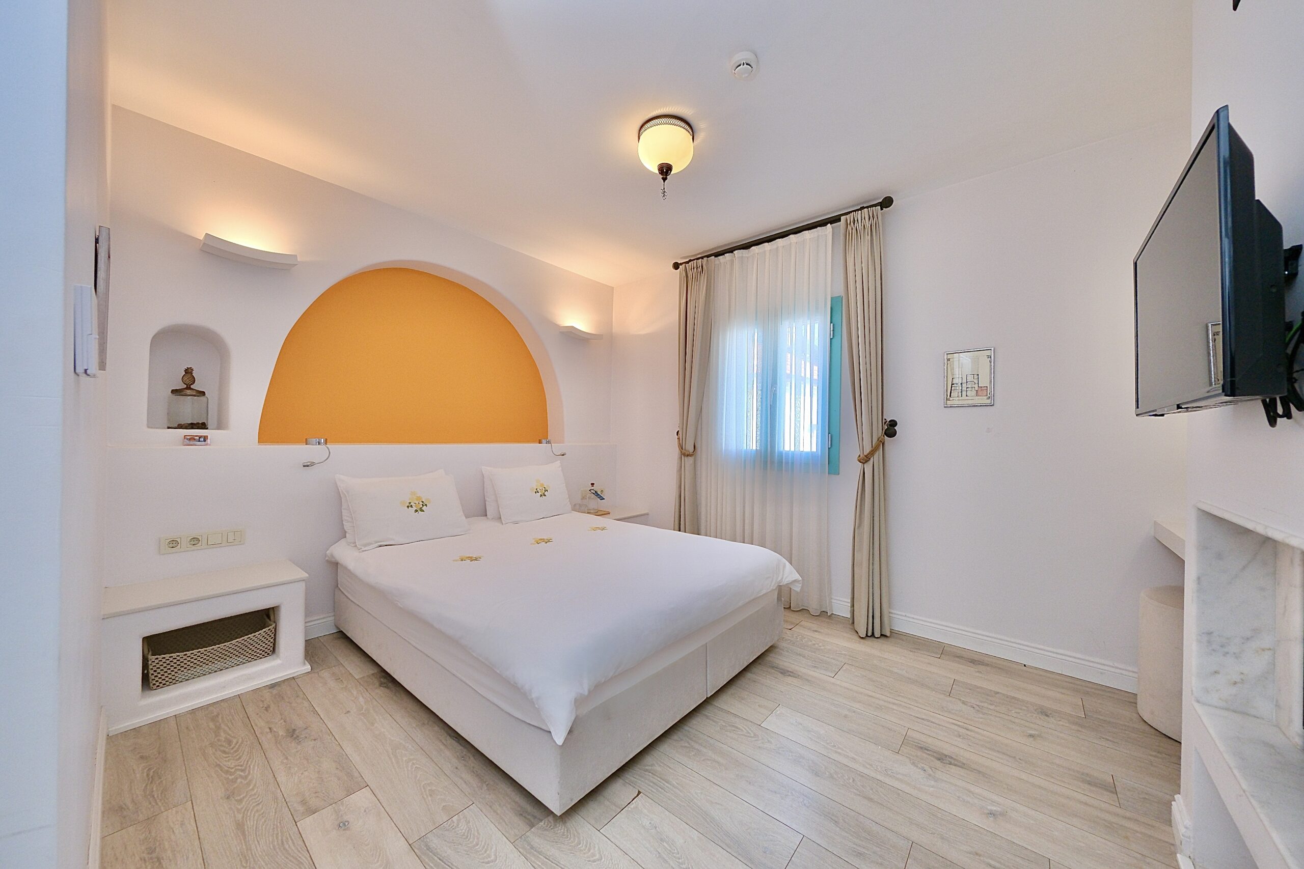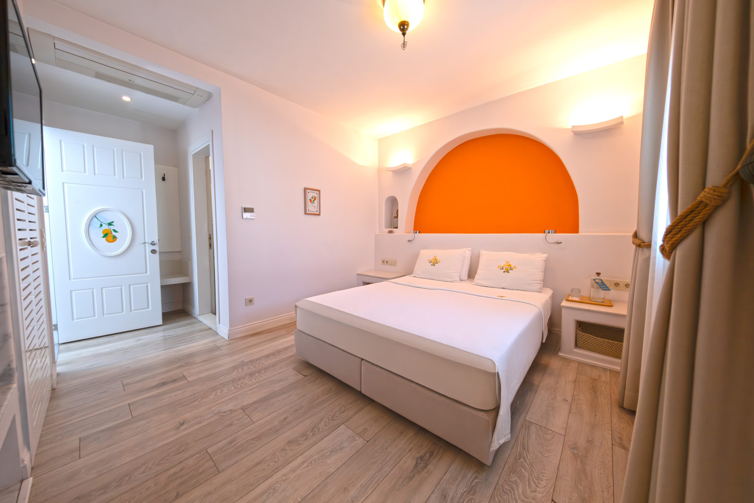 Sıcacık tonları ve enerjik atmosferiyle Turunç Odası, adını taşıdığı meyvenin canlılığını ve neşesini yansıtır. Turuncu dekorasyon detaylarıyla öne çıkan bu oda, yüksek katta yer alır ve doğal ışıkla aydınlanan iç mekânı sayesinde capcanlı bir konaklama deneyimi sunar.