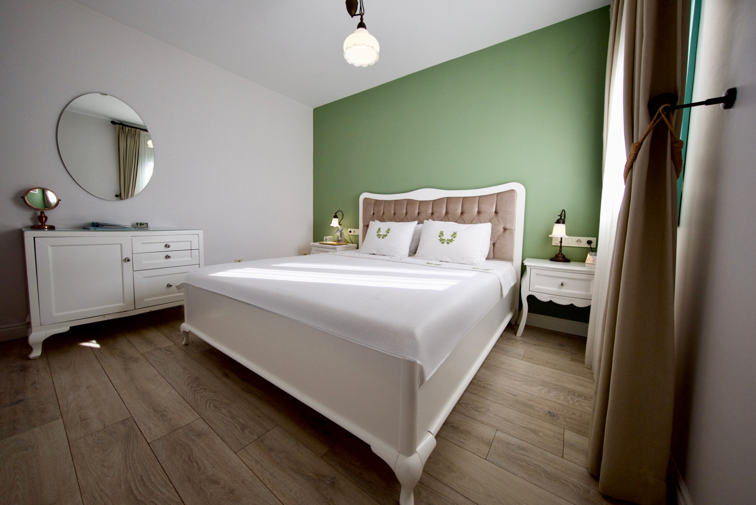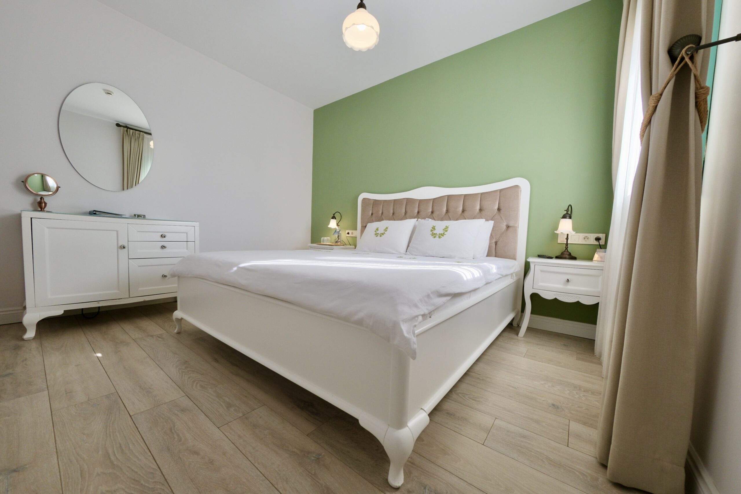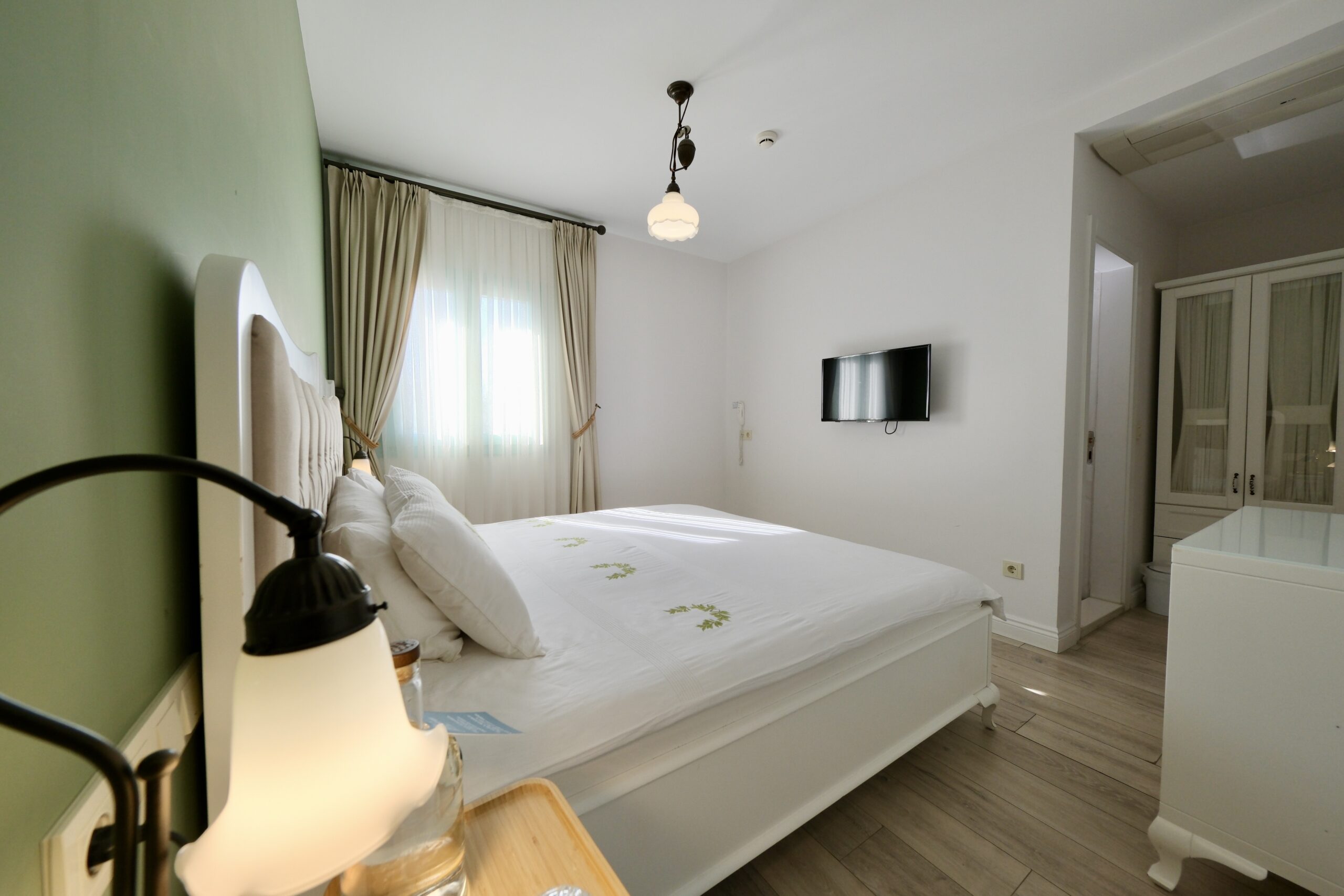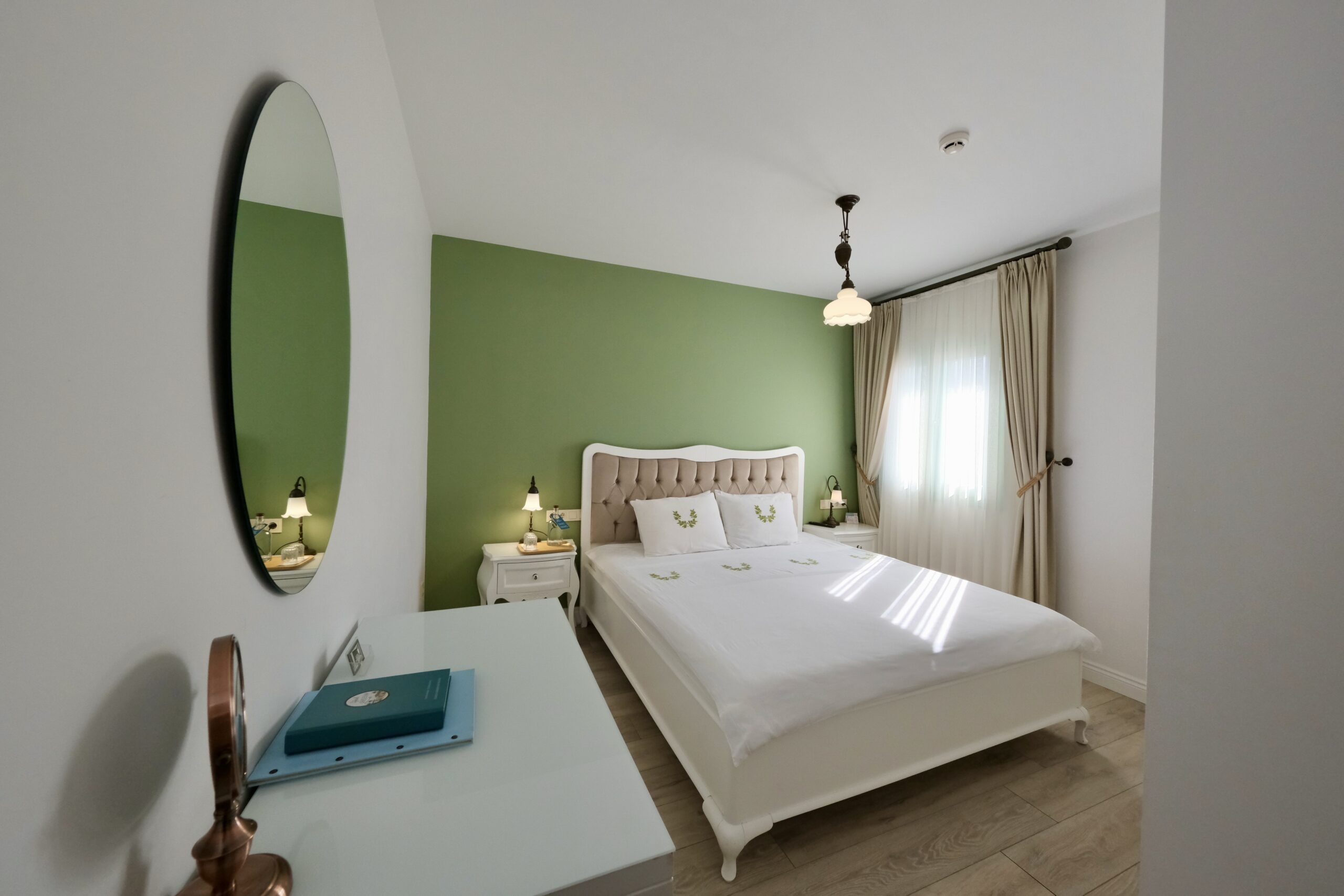 Akşamüstü süzülen muhteşem gün batımı ışığıyla daha da güzelleşen bu oda, doğal ışıkla her köşeyi ısıtırken, aynı zamanda sabah güne zinde ve dingin bir başlangıç yapmanızı sağlar. Sabah kuş sesleri eşliğinde uyanmak ve gün boyu bahçeyle bütünleşen bir atmosferde zaman geçirmek isteyen misafirler için ideal bir seçimdir.